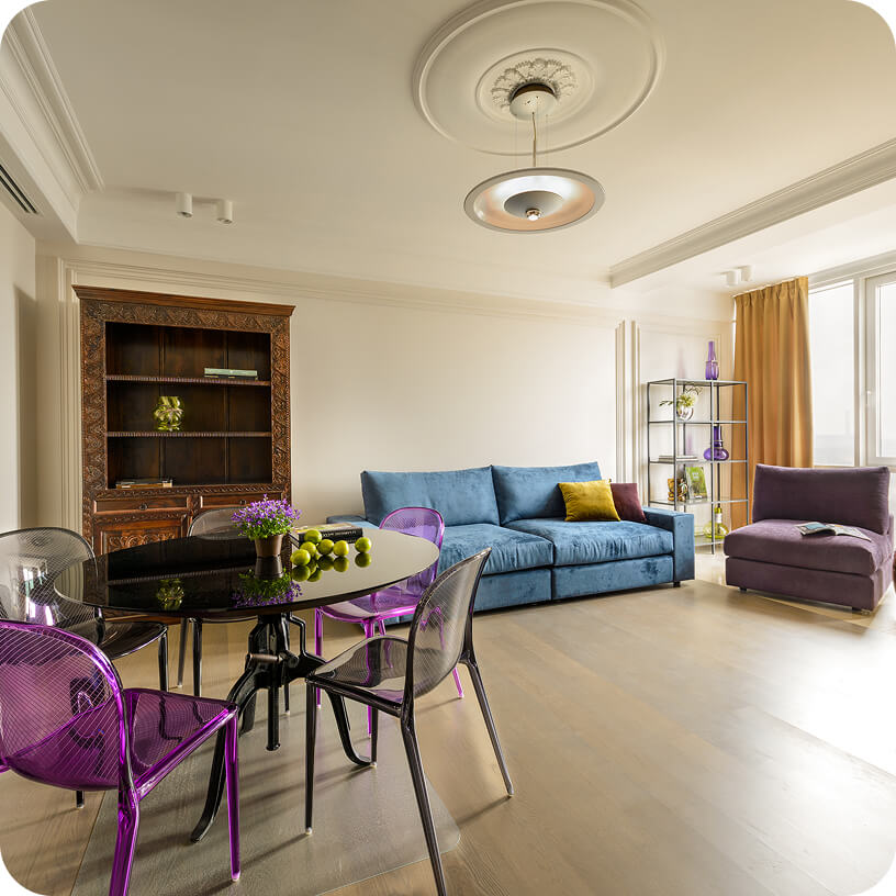 Двухкомнатная квартира с открытым пространством гостиной-столовой и кухни